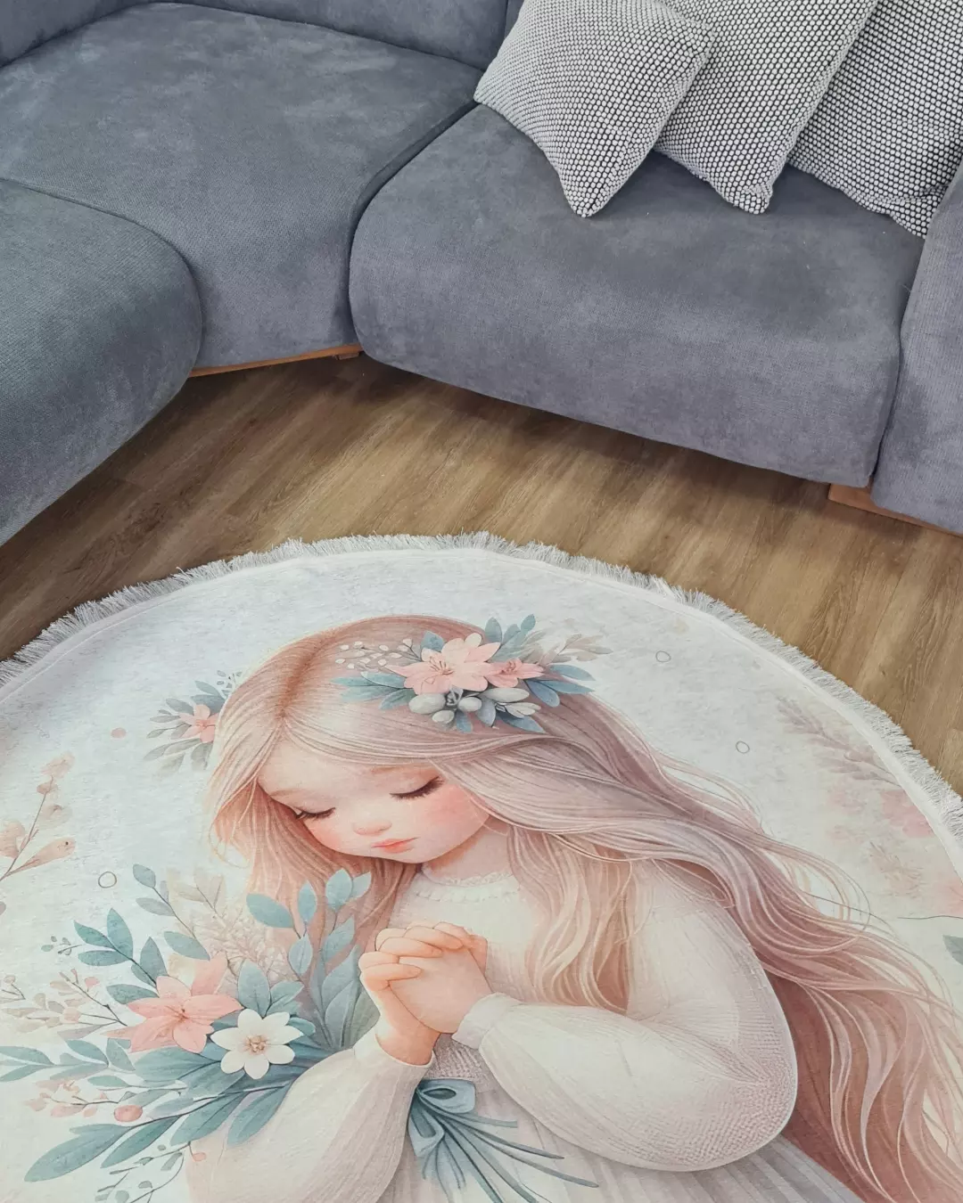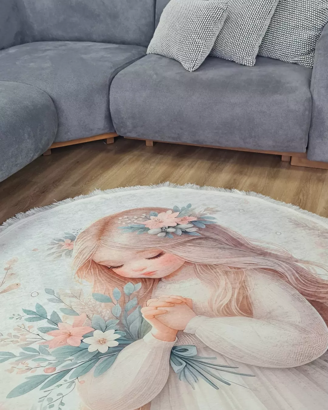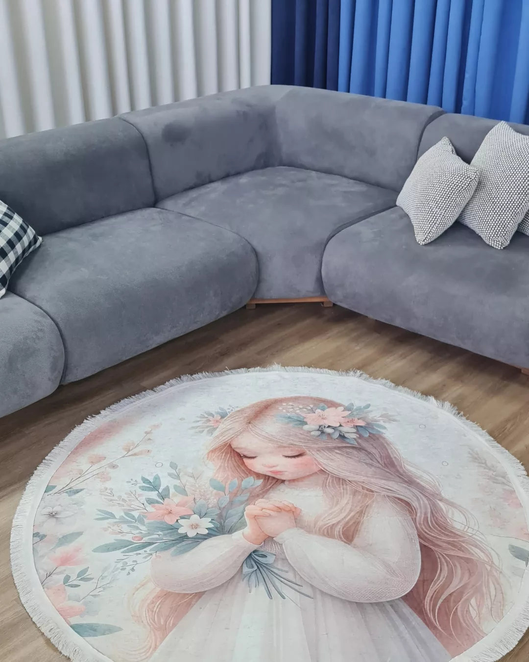 فرشینه چاپی گرد 150×150 طرح فرشته کد U429
